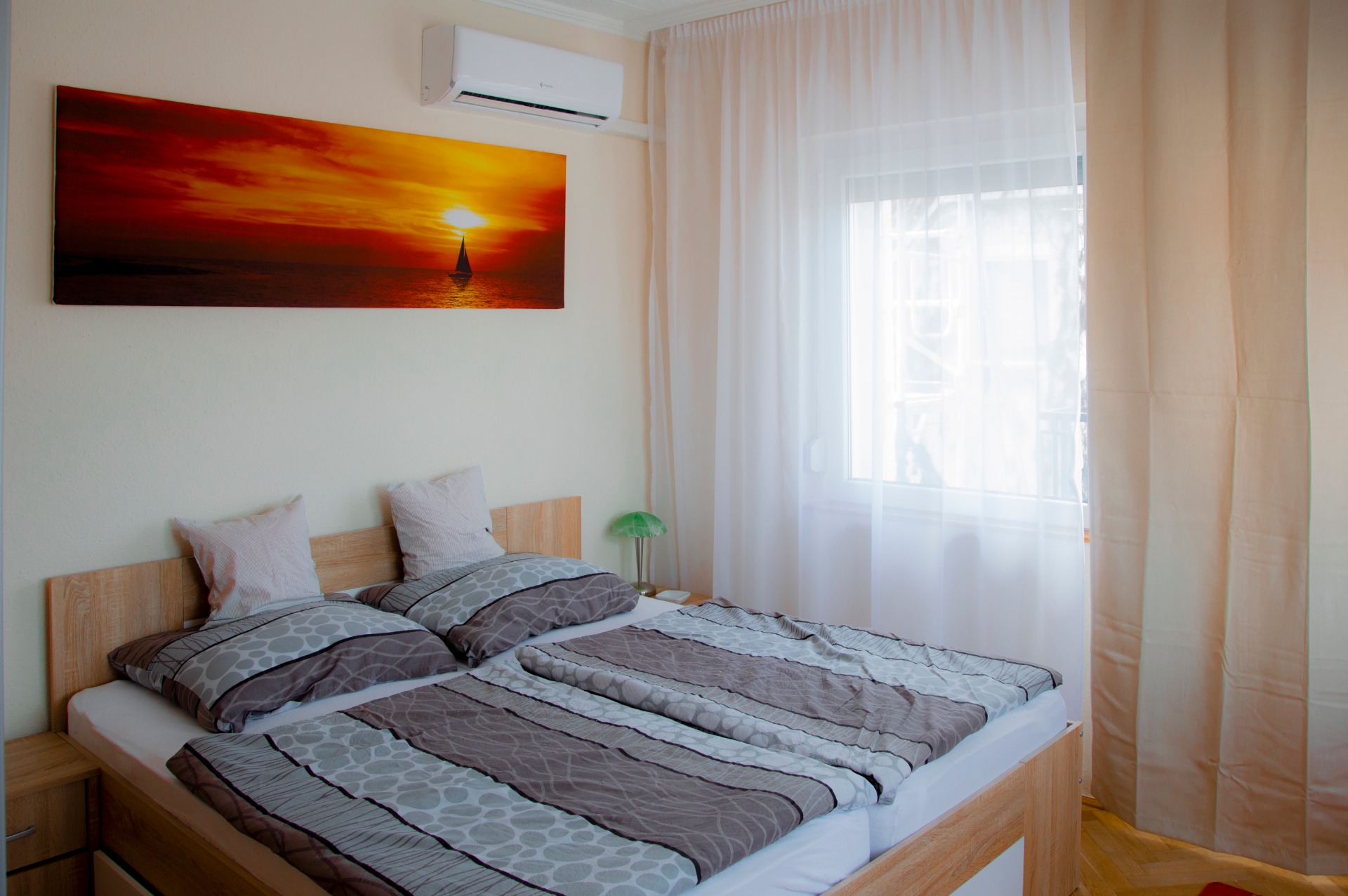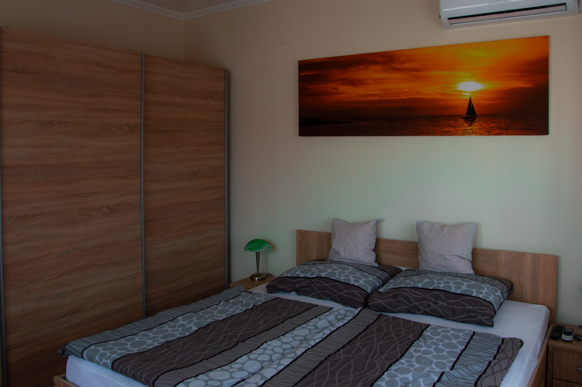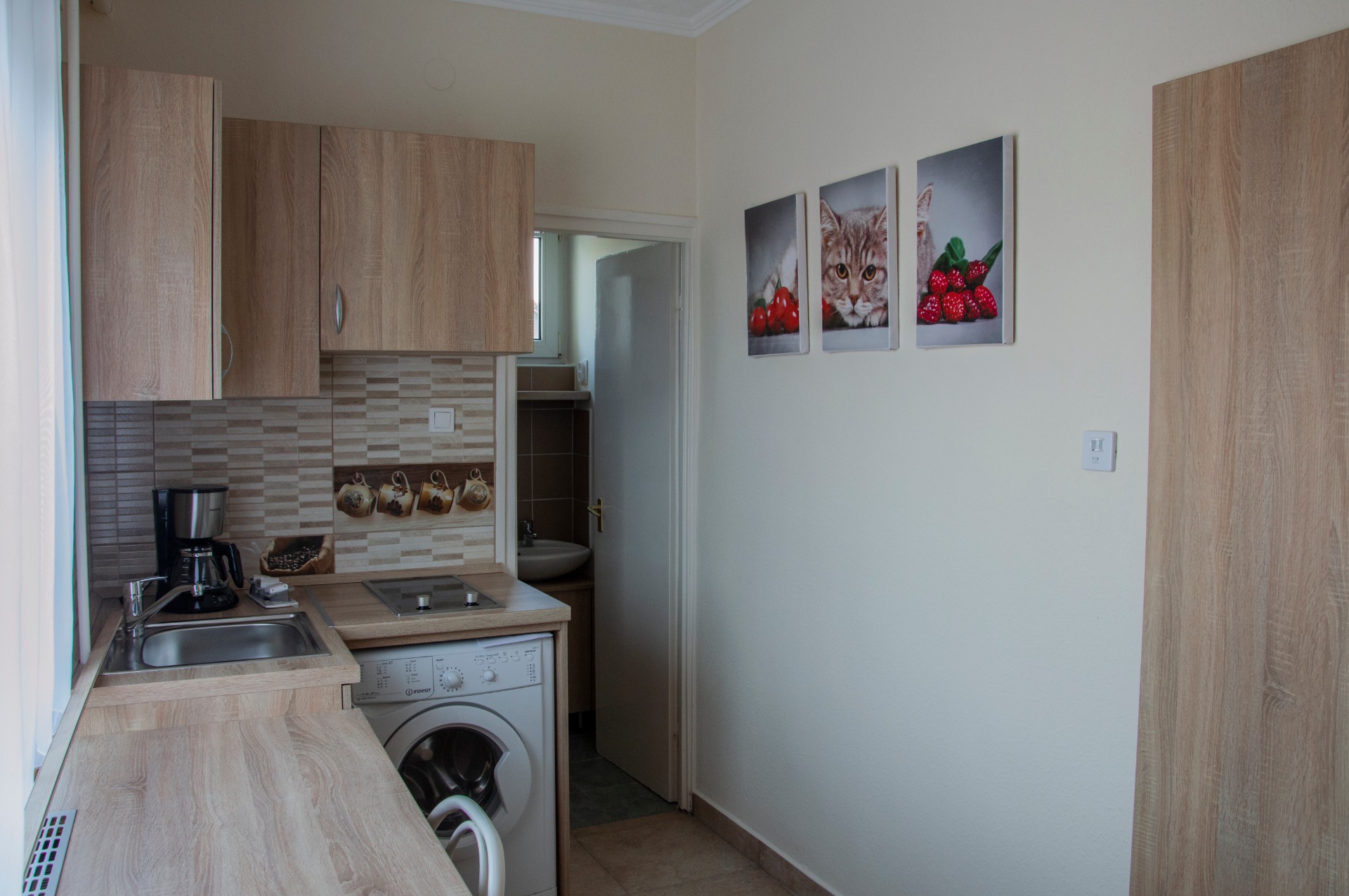 A légkondicionált apartmanhoz saját zuhanyzós fürdőszoba tartozik. Az apartman konyhája jól felszerelt, mosógép, mikrohullámú sütő, kerámia főzőlap, hűtőszekrény, vasaló, kávéfőző, étkezősarok szolgálja a vendégek kényelmét. A háló részben egy franciaágy található, ideális 2 felnőtt és legfeljebb 1 gyermek részére. Kérésre babaágyat, pótágyat be tudunk készíteni.